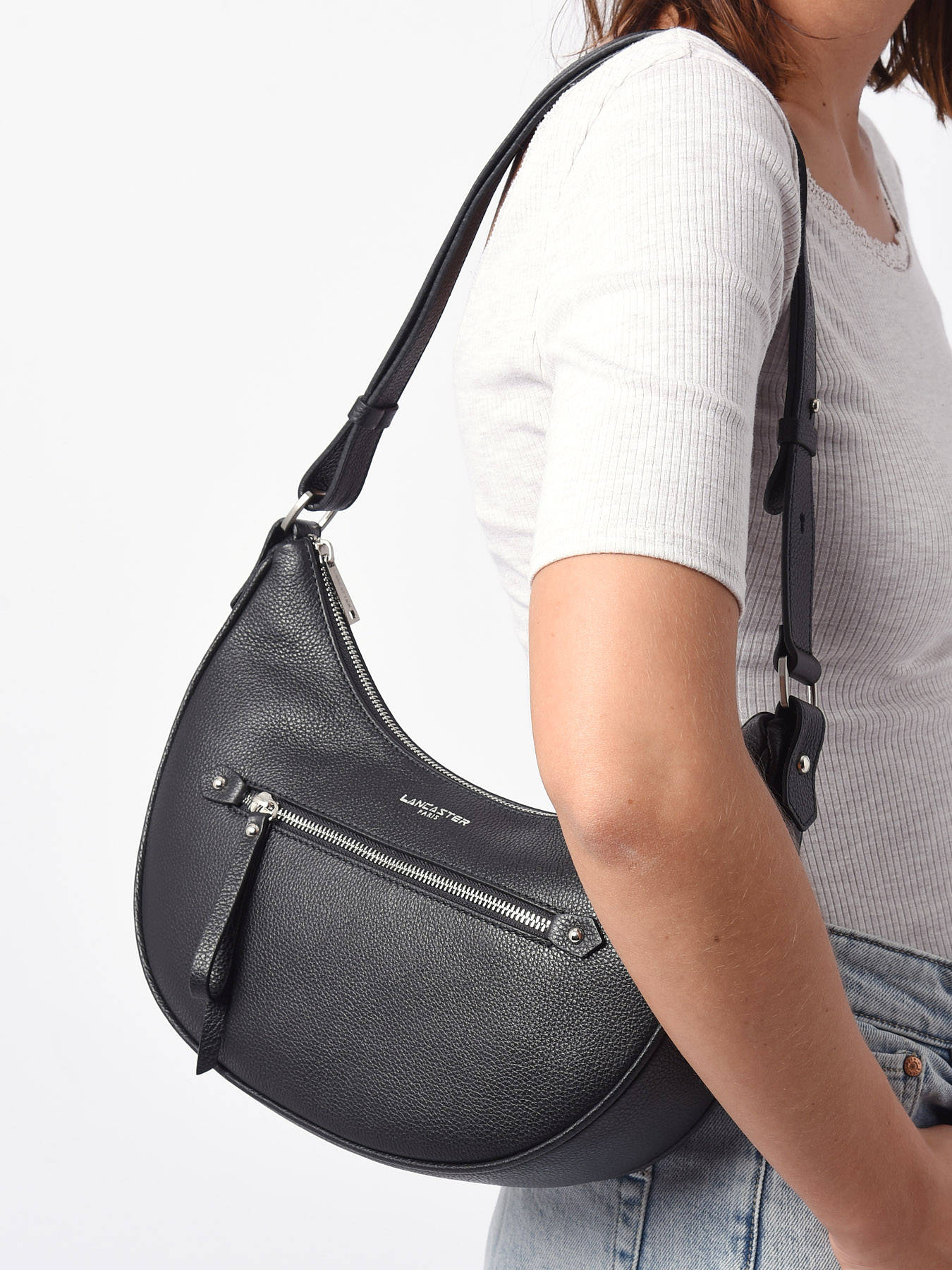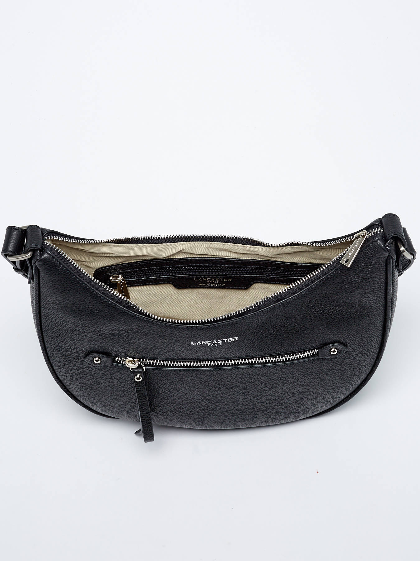 Deze is voor alle fashionista's, deze Firenze schoudertas van Lancaster in rundleder zal je doen smelten. Met de elegante halve maanvorm kun je veel benodigdheden voor overdag kwijt, zoals een telefoon, een bijpassende portemonnee en  sleutels. Met praktische opbergmogelijkheden zoals een voorvak, een steekvak en een zijvak met rits aan de binnenkant, is het organiseren van je spullen een fluitje van een cent. Draag hem over de schouder of gekruist met de verstelbare schouderriem en sluit het met de ritssluiting. Draag hem met je beste outfits.