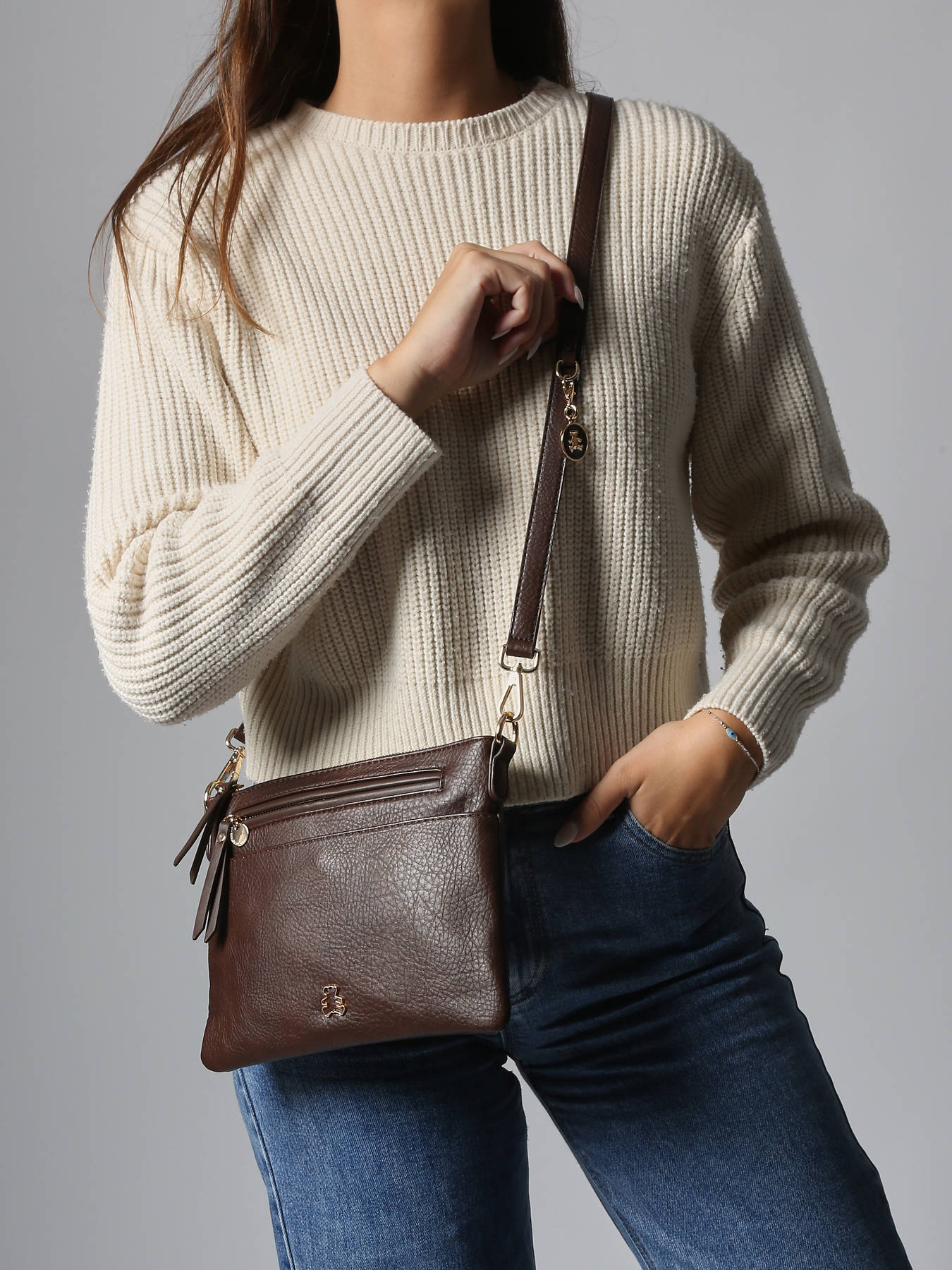 • Cross Body Tas Pocket Lulu castagnette Bruin pocket ZAHRA
