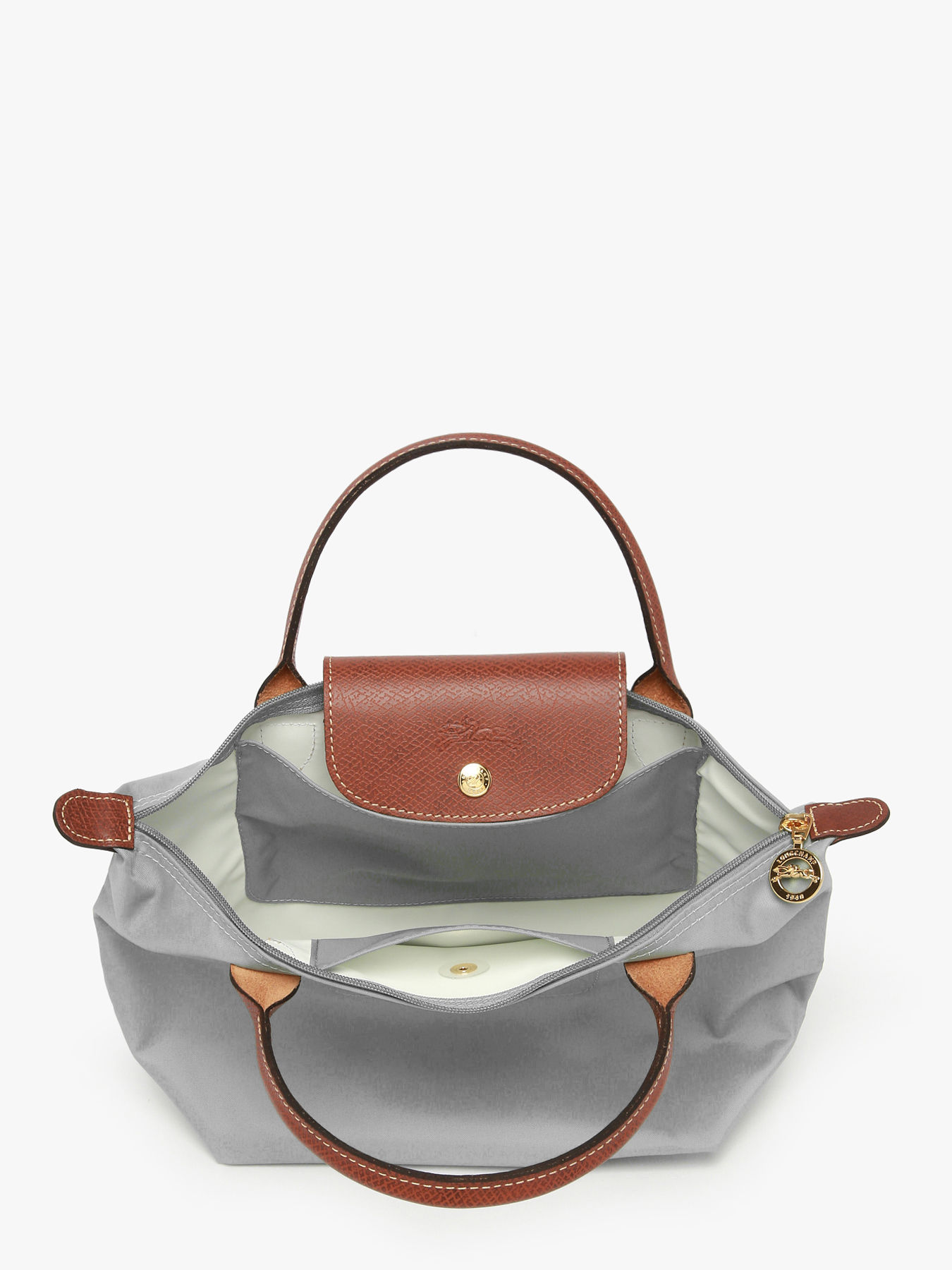 Deze kleine handtas met korte lederen hengsels uit ultralichte nylonstof is de meest compacte uitvoering van de populaire 'Le Pliage'-lijn van Longchamp. De Le Pliage collectie is geïnspireerd op de Japanse kunst van origami, en kan in vier worden gevouwen. Praktisch én elegant, om overal mee naartoe te nemen.