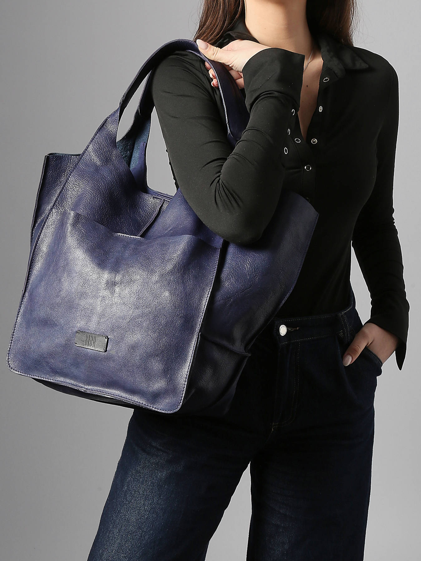 • Schoudertas Cow A4 Leder Basilic pepper Blauw cow BCOW31
