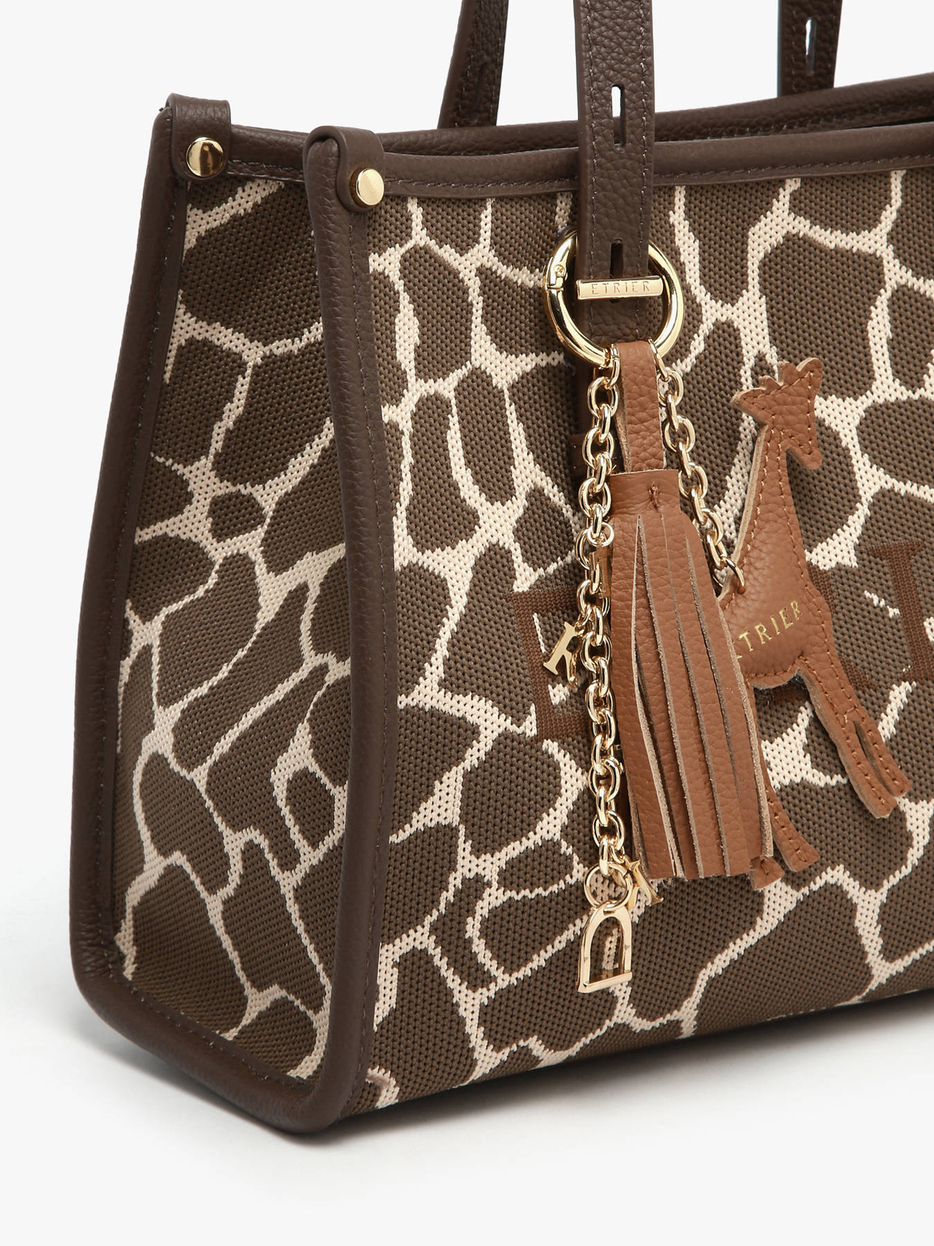 De tassenjuweel SAFARI van ETRIER voegt een speels en elegant vleugje toe aan de wereld van de lijn. Verkrijgbaar in meerdere kleuren, stelt hij een iconisch safaridier voor om je tas een persoonlijk en karaktervol accent te geven. De zwarte kleur zet de zebra in de kijker, mocha onderscheidt zich door de olifant, terwijl camel het silhouet van een giraffe prachtig benadrukt. Ontworpen als een volwaardig stijlaccessoire, past deze tassenjuwel perfect bij de verschillende tassen uit de SAFARI-collectie en voegt hij een wilde en verfijnde noot toe aan je zomerse looks.